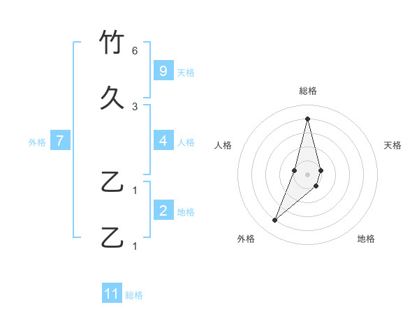 竹久 乙乙さんを姓名の画数から五運を鑑定