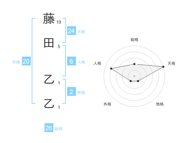 藤田 乙乙さんを姓名の画数から五運を鑑定