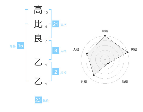 高比良 乙乙さんの天格は21画の5点!