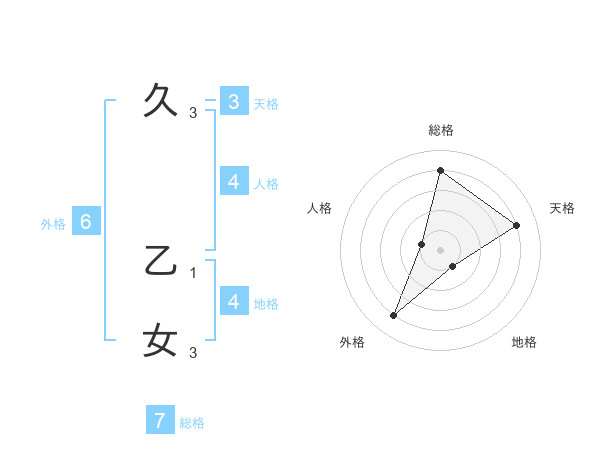 久 乙女さんの総格は7画の4点!