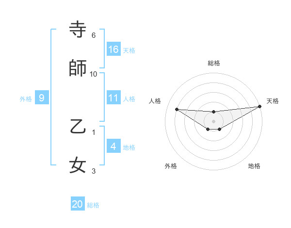 寺師 乙女さんの総格は20画の1点!