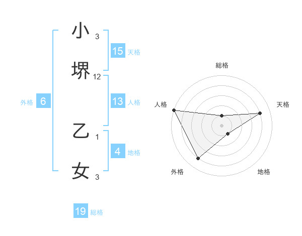 小堺 乙女さんを姓名の画数から五運を鑑定