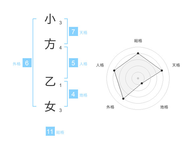 小方 乙女さんの総格は11画の4点!