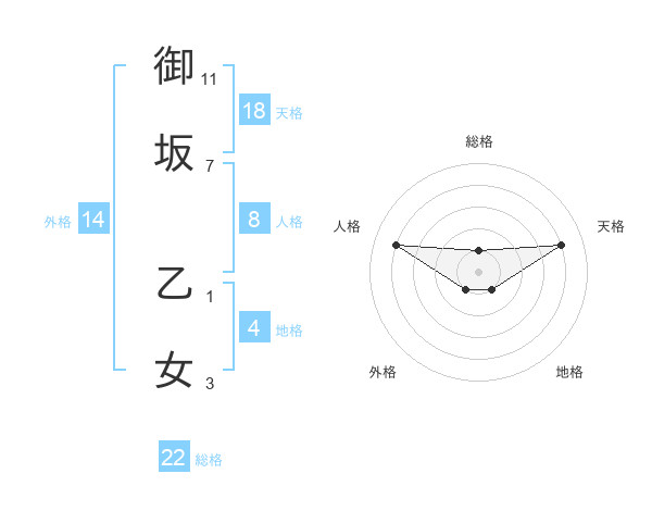 御坂 乙女さんの総格は22画の1点!