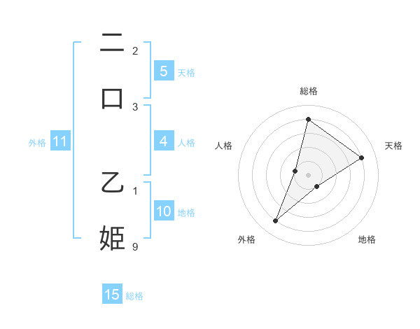二口 乙姫さんの総格は15画の4点