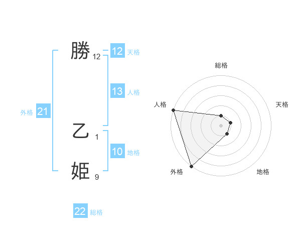 勝 乙姫さんの総格は22画の1点!