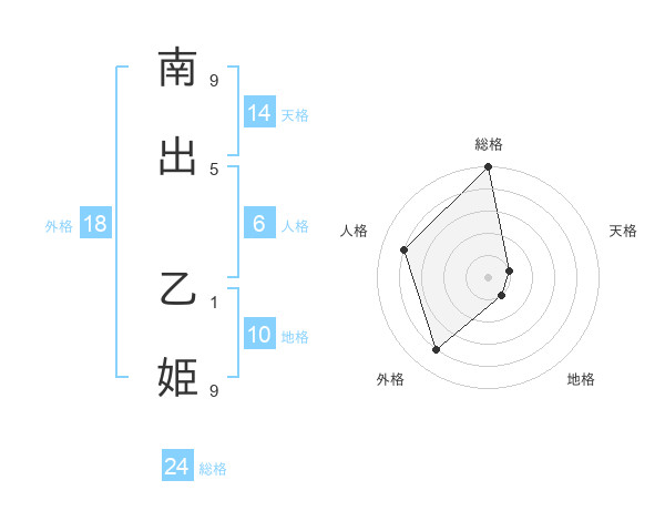 南出 乙姫さんの総格は24画の5点!