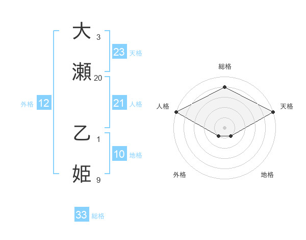 大瀬 乙姫さんを姓名の画数から五運を鑑定