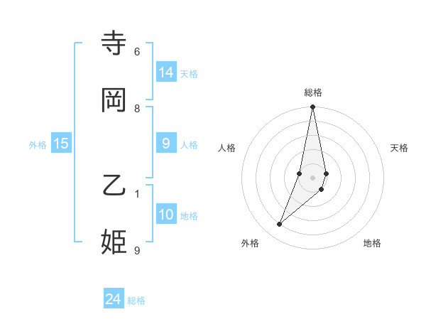 寺岡 乙姫さんの総格は24画の5点!