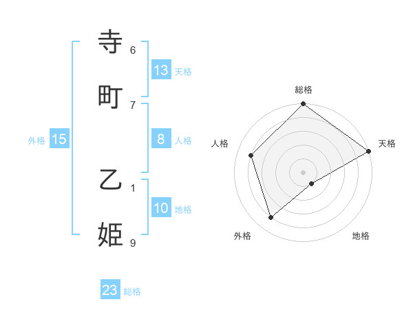 寺町 乙姫さんの総格は23画の5点!