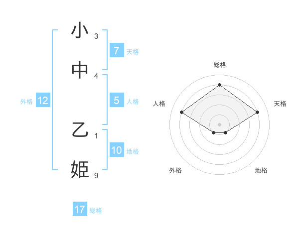 小中 乙姫さんを姓名の画数から五運を鑑定