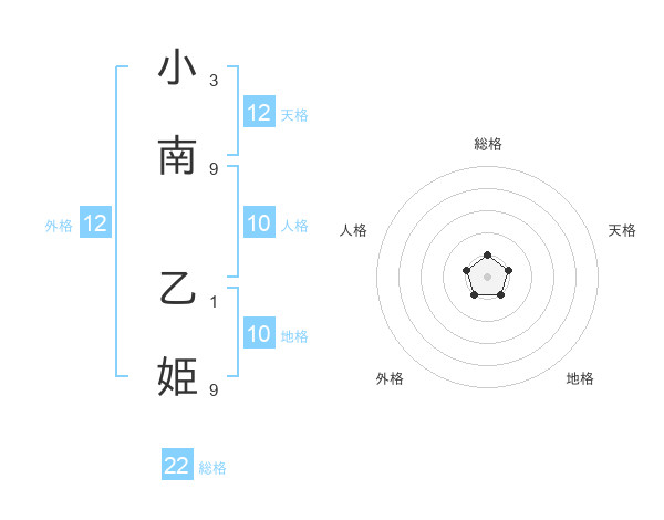 小南 乙姫さんを姓名の画数から五運を鑑定