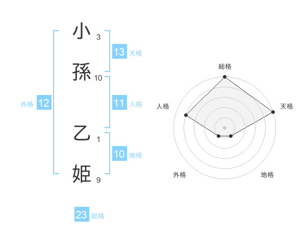 小孫 乙姫さんの天格は13画の5点!