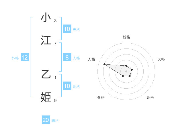 小江 乙姫さんの総格は20画の1点!