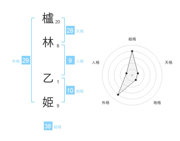 櫨林 乙姫さんを姓名の画数から五運を鑑定