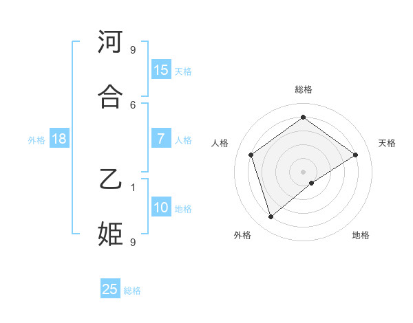 河合 乙姫さんを姓名の画数から五運を鑑定