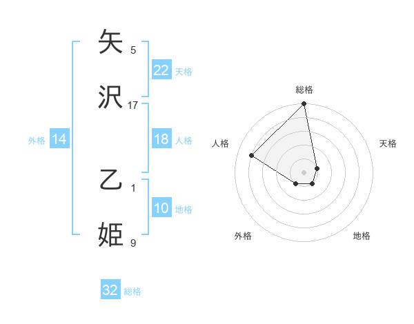 矢沢 乙姫さんを姓名の画数から五運を鑑定