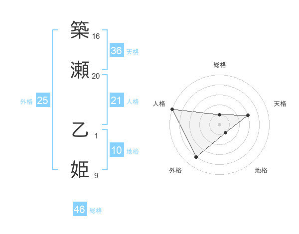 築瀬 乙姫さんを姓名の画数から五運を鑑定