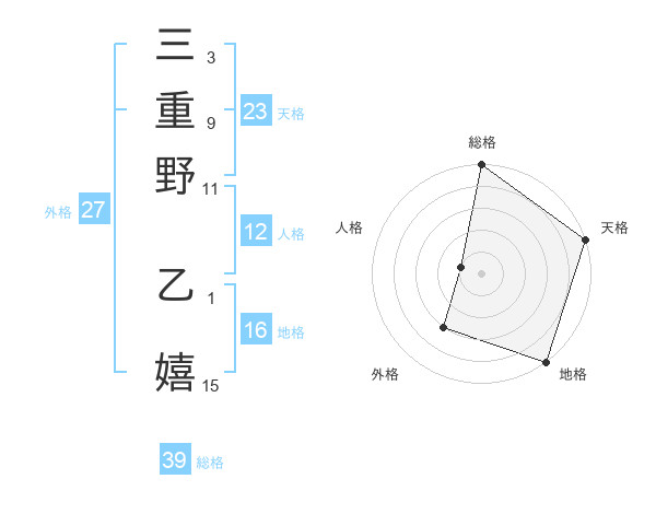 三重野 乙嬉さんを姓名の画数から五運を鑑定