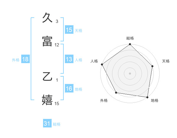 久富 乙嬉さんを姓名の画数から五運を鑑定