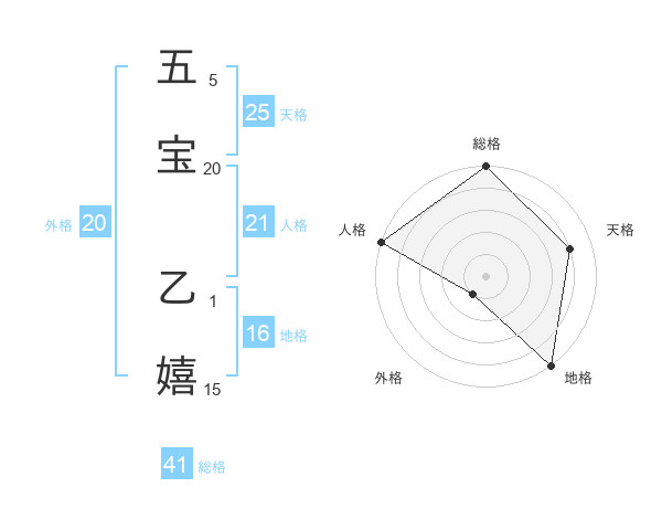 五宝 乙嬉さんを姓名の画数から五運を鑑定