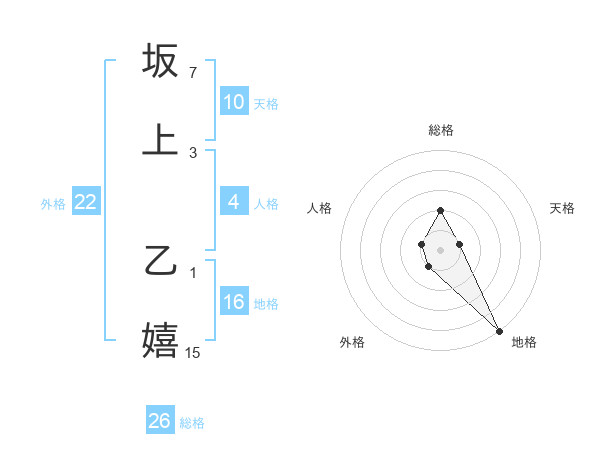 坂上 乙嬉さんを姓名の画数から五運を鑑定