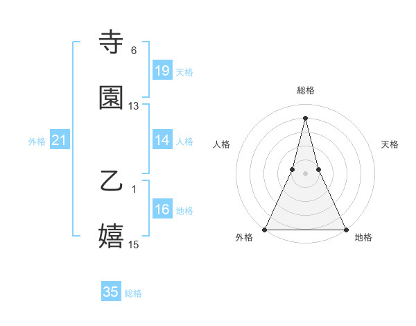 寺園 乙嬉さんの外格は21画の5点!