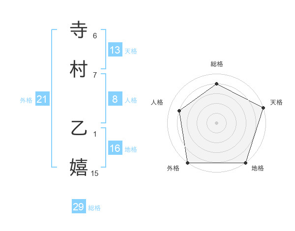寺村 乙嬉さんを姓名の画数から五運を鑑定