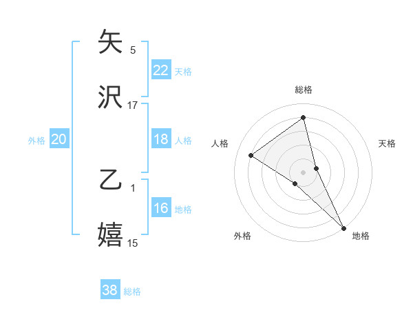 矢沢 乙嬉さんの天格は22画の1点!