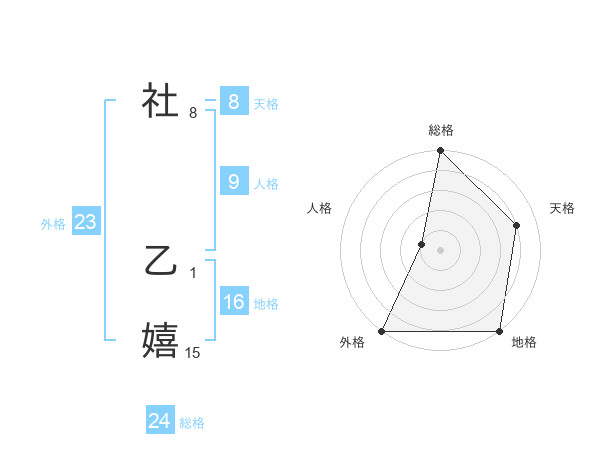 社 乙嬉さんの総格は24画の5点!