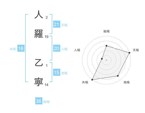 人羅 乙寧さんを姓名の画数から五運を鑑定
