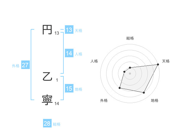 円 乙寧さんの外格は27画の3点!