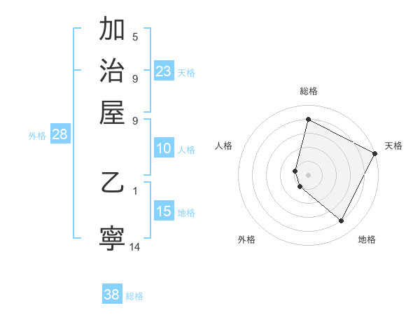 加治屋 乙寧さんの総格は38画の4点