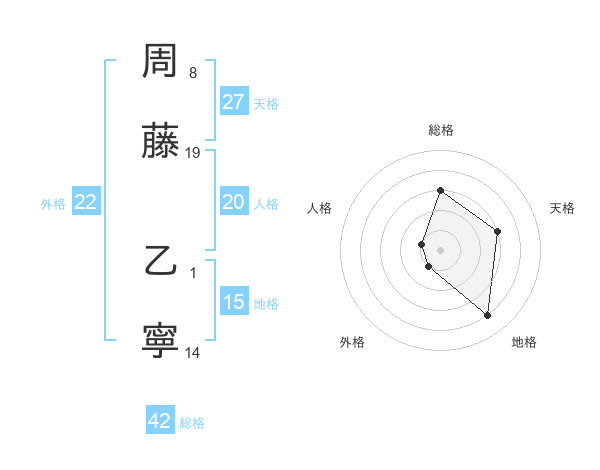 周藤 乙寧さんの外格は22画の1点!