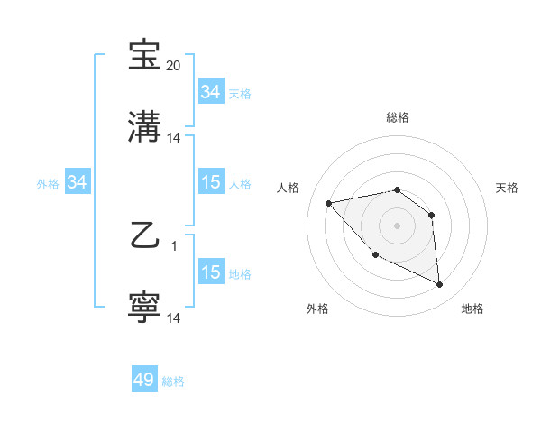 宝溝 乙寧さんの総格は49画の2点!