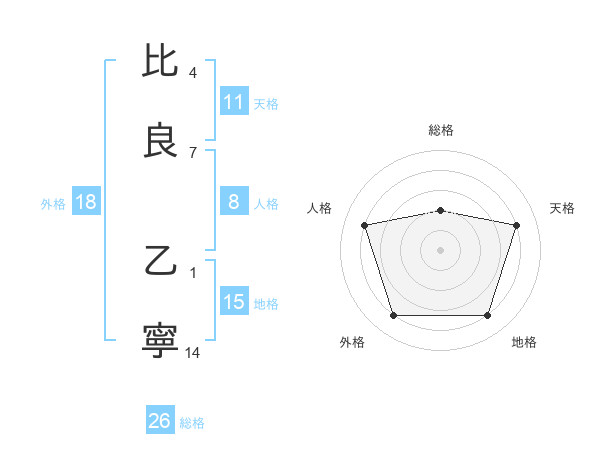 比良 乙寧さんの総格は26画の2点!