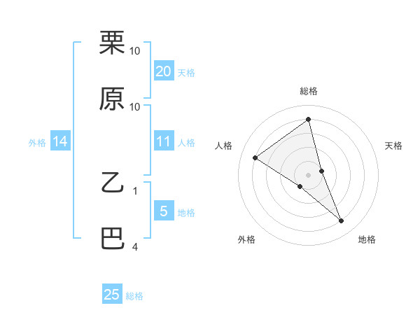 栗原 乙巴さんを姓名の画数から五運を鑑定