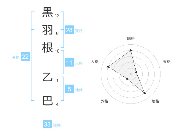 黒羽根 乙巴さんを姓名の画数から五運を鑑定