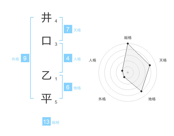 井口 乙平さんの総格は13画の5点!