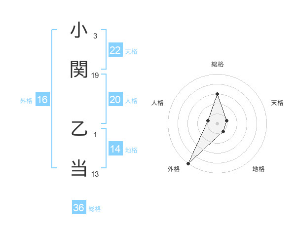小関 乙当さんの外格は16画の5点!