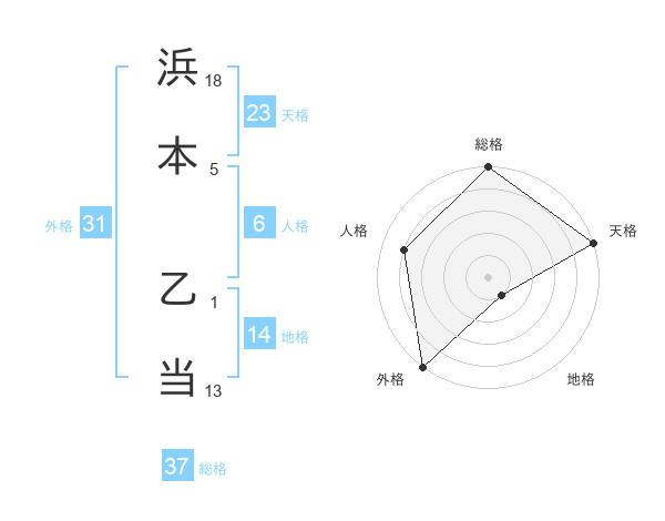 浜本 乙当さんを姓名の画数から五運を鑑定