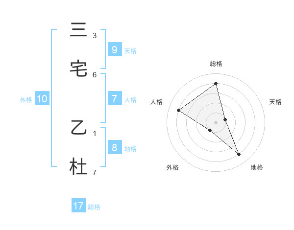 三宅 乙杜さんを姓名の画数から五運を鑑定