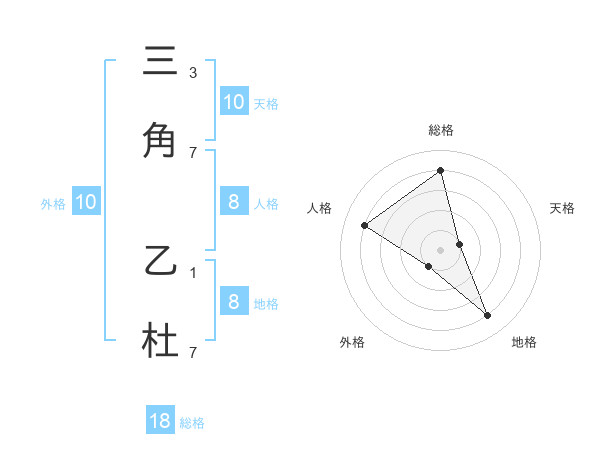 三角 乙杜さんを姓名の画数から五運を鑑定