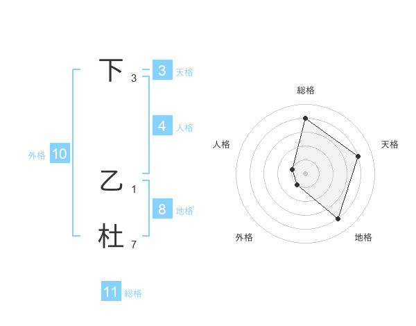 下 乙杜さんの総格は11画の4点!
