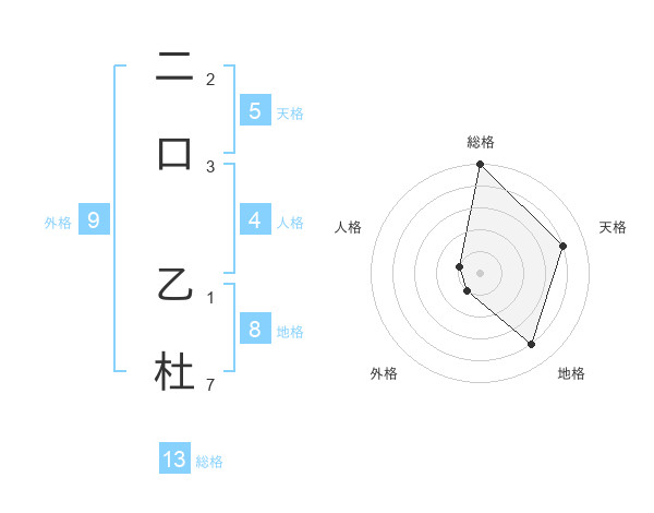 二口 乙杜さんの天格は5画の4点!