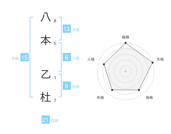 八本 乙杜さんを姓名の画数から五運を鑑定