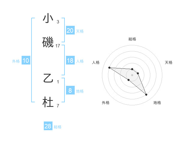 小磯 乙杜さんの総格は28画の1点!