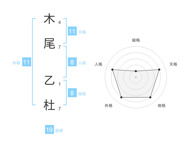 木尾 乙杜さんを姓名の画数から五運を鑑定