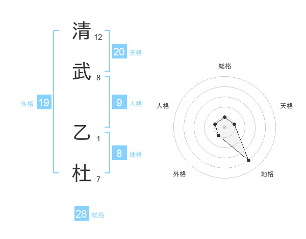 清武 乙杜さんを姓名の画数から五運を鑑定