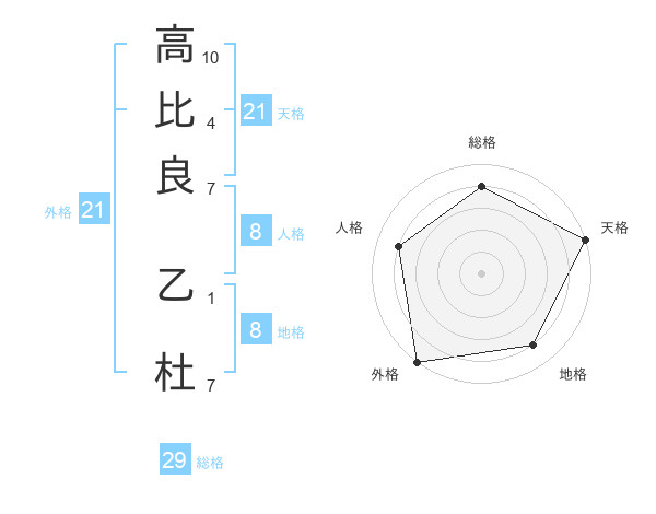 高比良 乙杜さんの総格は29画の4点!